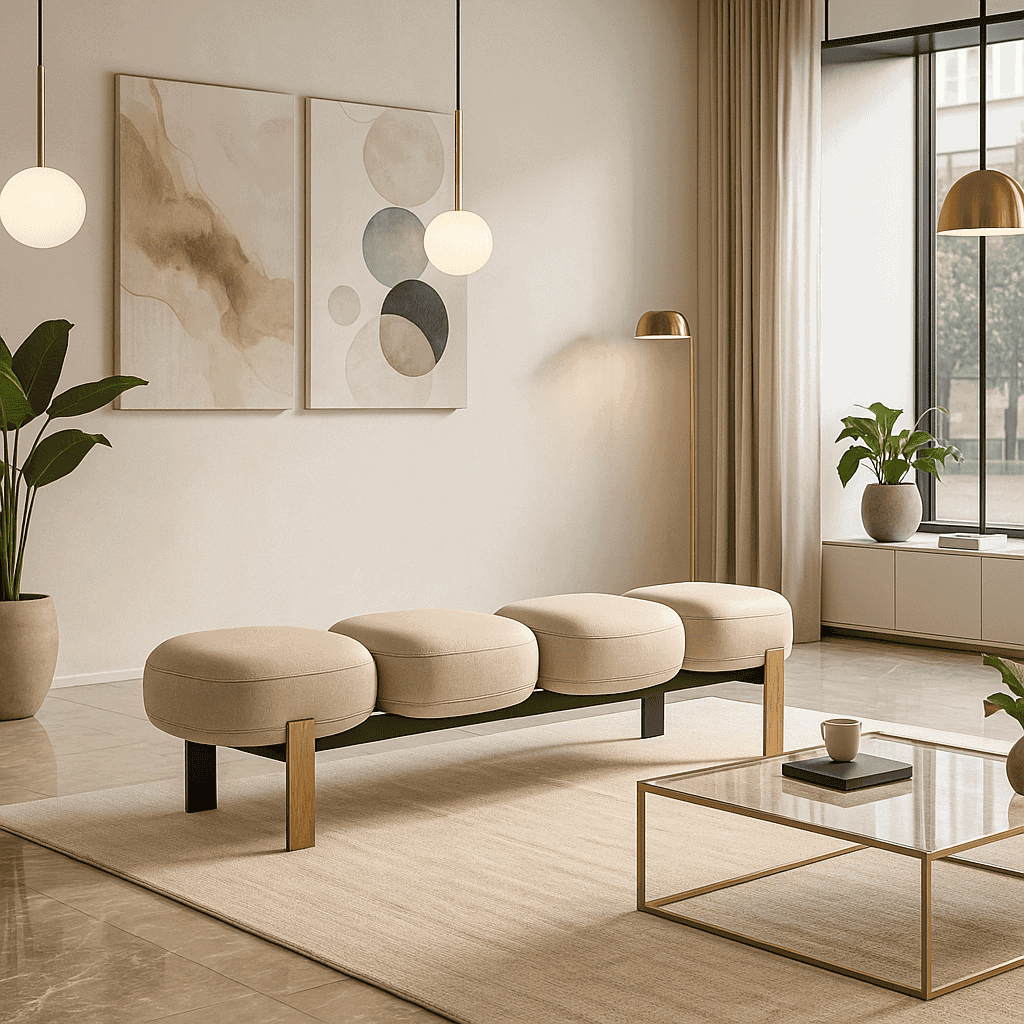 BANCO ILHA é um banco de luxo com design contemporâneo, acabamento premium e proporções pensadas para ambientes sofisticados.