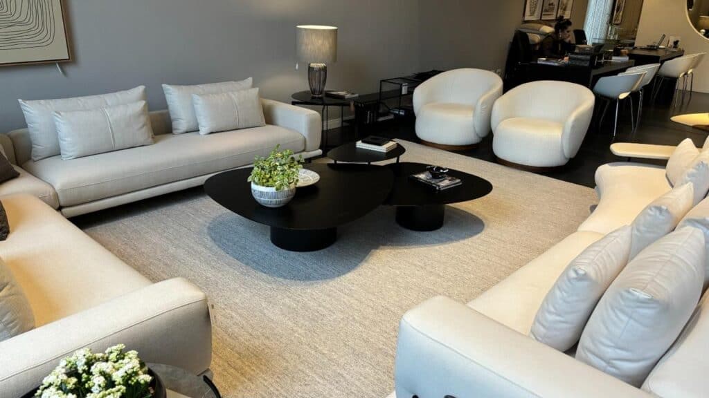 Um tapete pode transformar a percepção de um espaço. Combine com sofás de linho, poltronas de design e mesas de jantar imponentes. Tapetes claros ampliam o ambiente, enquanto os escuros trazem sensação de aconchego.